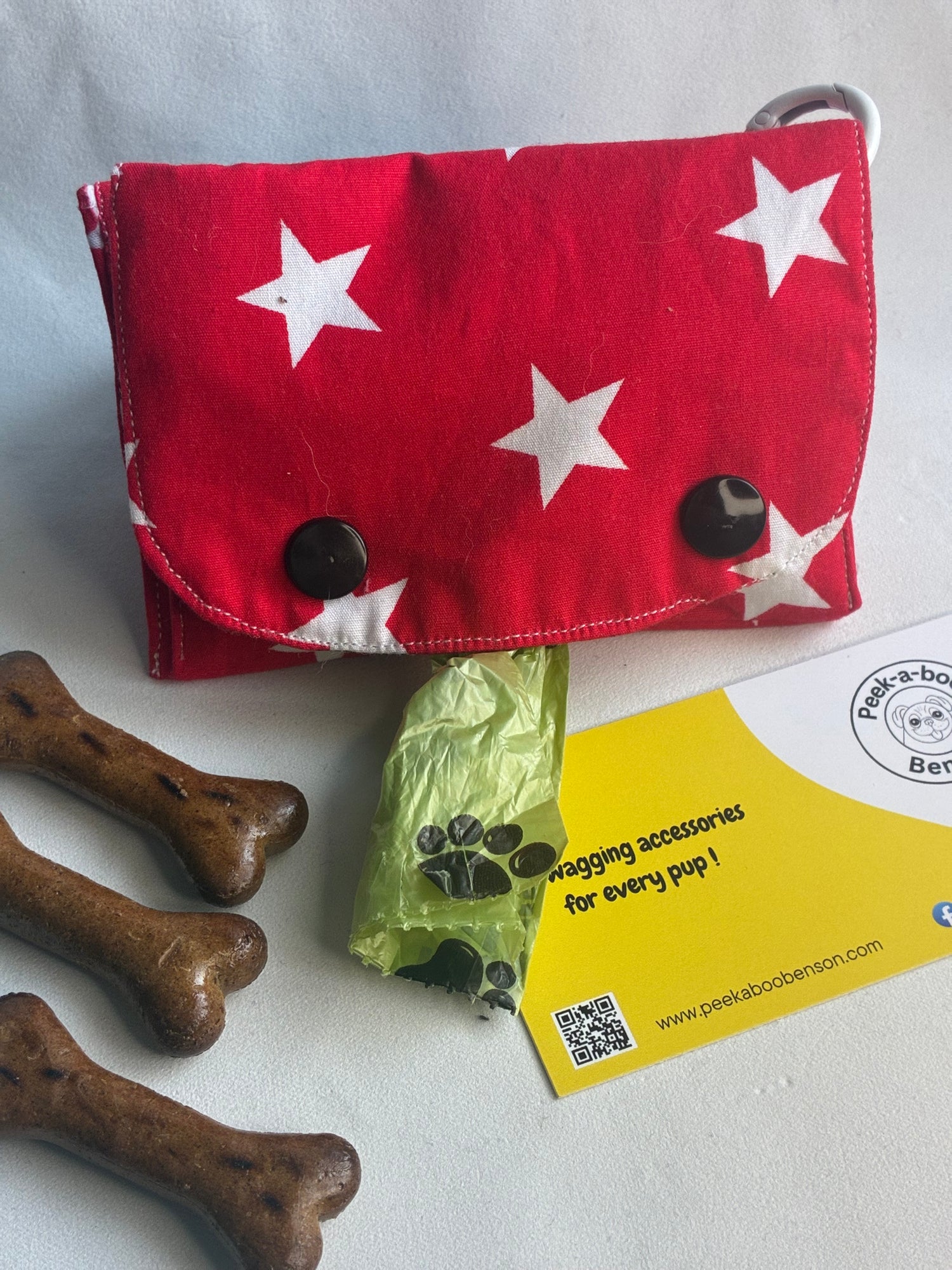 Carry a cheeky poo bag pouch on your dog walks! This handmade pouch features three sections—one for poo bags, one for dog treats, and a slot for your card or cash (handy for a surprise coffee break!). It can be matched to your dog’s collar, lead, or even your outfit. Crafted from recycled fabrics I have on hand, each design is unique. If you don’t spot your favourite colour, check out the COLLARS & LEADS section and choose one to match. Remember, these charming designs might be one-of-a-kind or part of a limited run!
